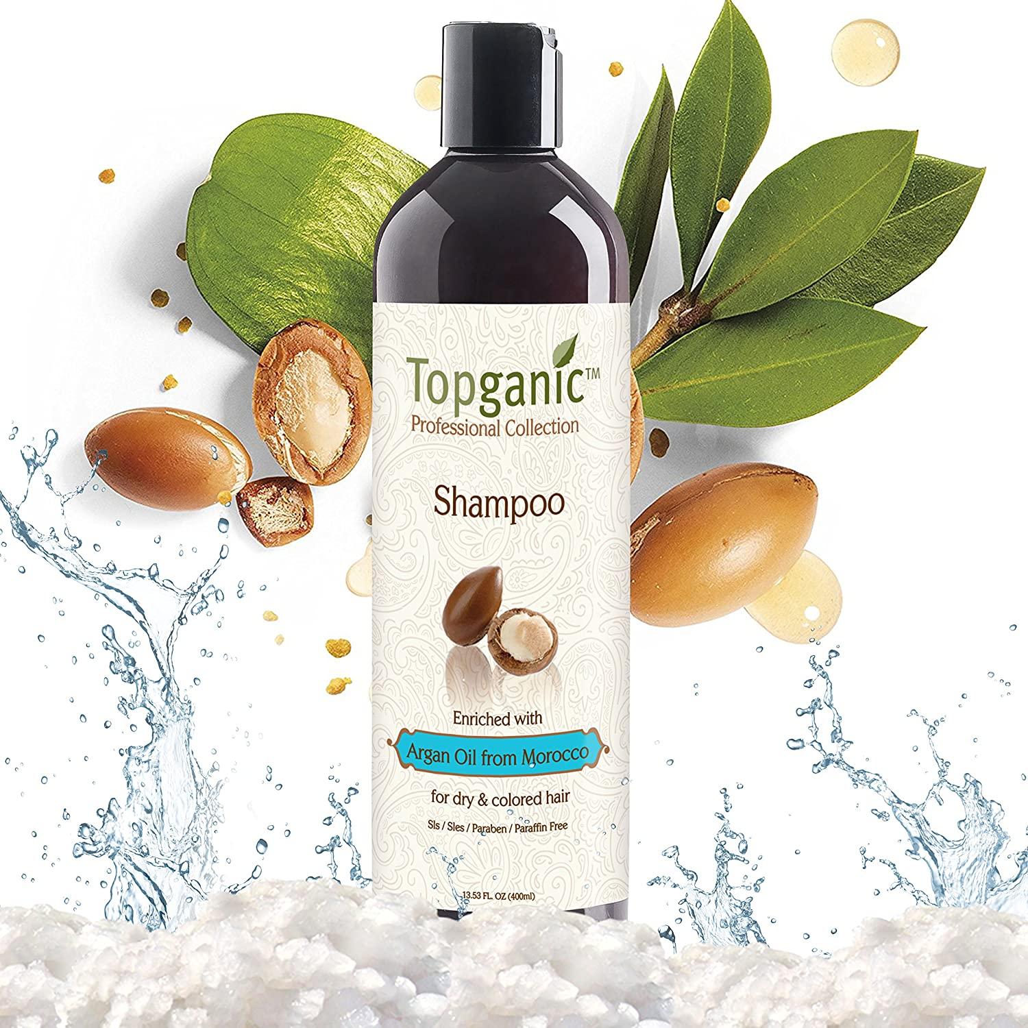 La fórmula del champú con aceite de argán para cabello seco de Topganic para hombres y mujeres está enriquecida con potentes ingredientes totalmente naturales, como aceite de argán, aloe vera calmante, aceite de almendras dulces acondicionador, vitaminas A, B5 y E nutritivas, extracto de granada antioxidante y rico en minerales. Elixir del Mar Muerto.